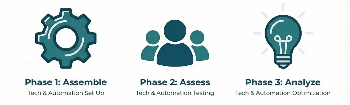 With my Assemble, Assess & Analyze Framework, your Tech & Automations will be set up, tested and working so you can start using them right after your VIP Day.